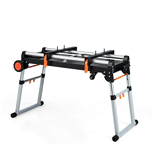 COSTWAY Supporto Pieghevole per Troncatrice, 5 in 1 Banco da Lavoro per Troncatrice con Altezza Regolabile a 3 Livelli, Carico Fino a 150 kg