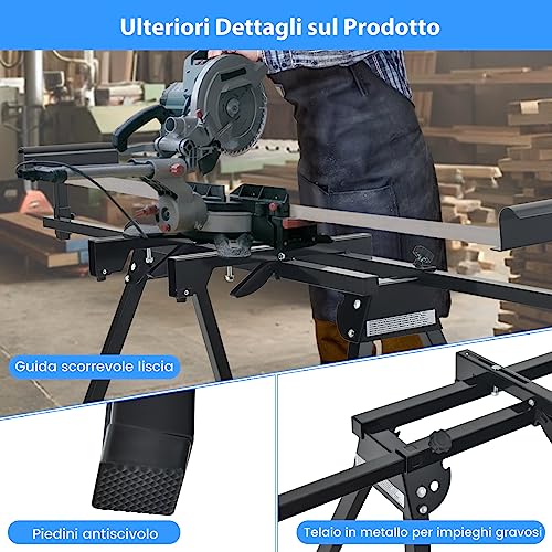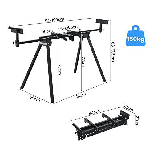 COSTWAY Supporto Troncatrice Universale con Estensioni, Design Pieghevole e Portatile, Sistema di Serraggio, Carico Fino a 150 kg, per Seghe a Smusso da 20,5 cm a 30,5 cm