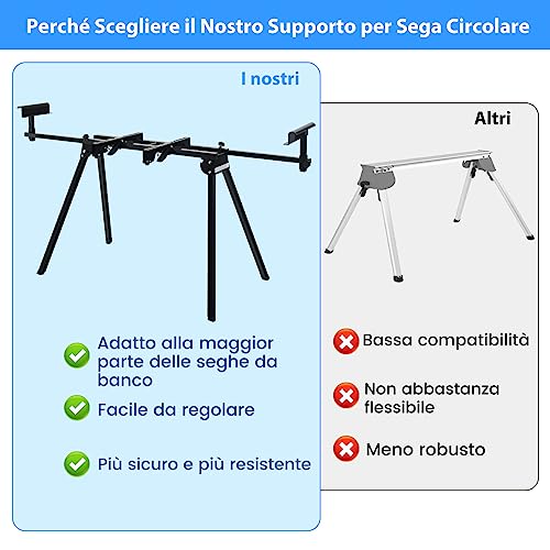 【Supporto Universale】Questo supporto universale è perfetto per la maggior parte delle seghe a smusso da 20,5 cm a 30,5 cm. Inoltre, si adatta bene anche ad altre attrezzature da banco, soddisfacendo le vostre diverse esigenze.