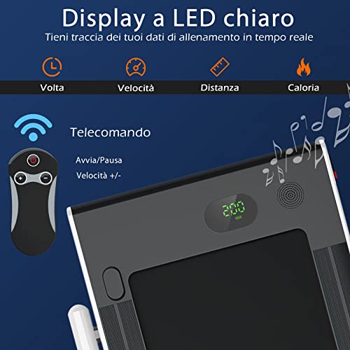 COSTWAY Tapis Roulant Elettrico Pieghevole Salvaspazio, Tapis Roulant con APP, Telecomando, Supporto per Cellulare, Display a LED, Bluetooth e Altoparlante, Portata 120 kg (Bianco)