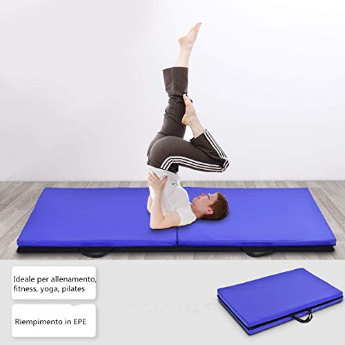 COSTWAY Tappetino Yoga Pieghevole e Portatile, Tappeto Palestra Spesso e Morbido con Maniglie, Tappeto Fitness per Case e Palestra, 180 x 60 x 4 cm (Blu Scuro)