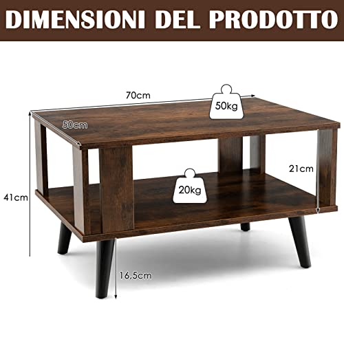 COSTWAY Tavolino da Salotto in Legno, Tavolino Centrale a 2 Livelli con Ripiano di Stoccaggio Aperto, Tavolino da Caffè Industriale e Moderno per Soggiorno e Ufficio, Portata 50 kg, 70 x 50 x 41cm