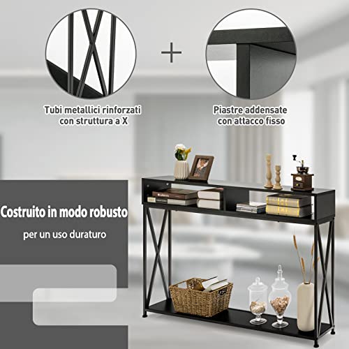 COSTWAY Tavolo Consolle a 2 Livelli, Tavolo da Ingresso con Telaio di Metallo, Ripiani e Piedini Regolabili, Tavolo Multiuso e Moderno per Salotto, Ingresso e Corridoio, 120 x 23 x 79 cm (Nero)
