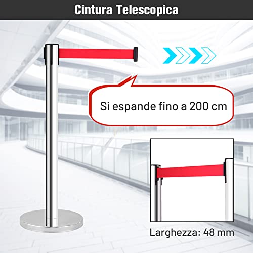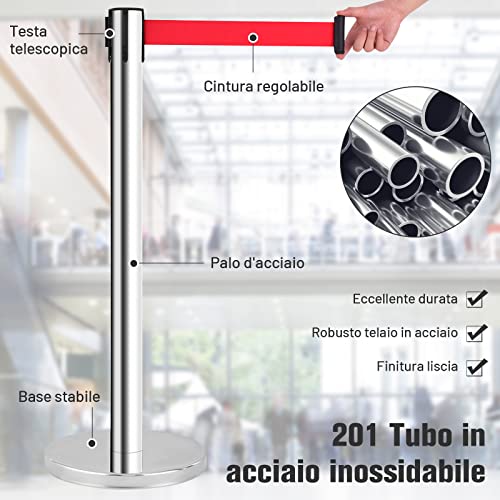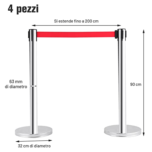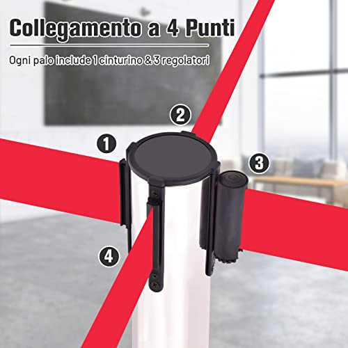 COSTWAY Transenne Separacode Eliminacode, Paletti Colonnina di Delimitazione, Set di 4 Paletti, Lunghezza Coda Totale 8 Metri, Acciaio INOX, Rosso/Argento