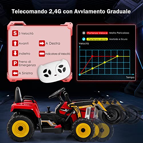 【Sicurezza e Comfort di Alto Livello】Il veicolo elettrico per bambini è realizzato in materiale resistente in PP e acciaio che garantisce un uso sicuro e una lunga durata. Lo schienale alto, l'ampio sedile, la cintura di sicurezza regolabile e i corrimano laterali garantiscono il massimo della sicurezza e del comfort. Inoltre, la funzione di avviamento morbido protegge da impatti improvvisi.