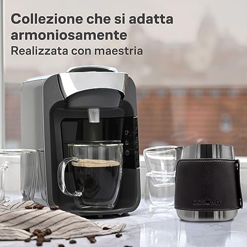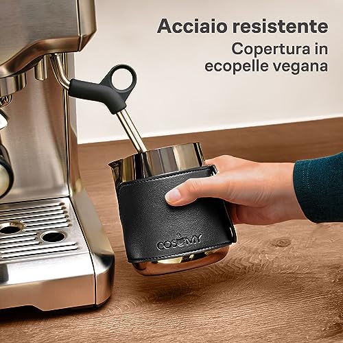 ☕ ESPERIENZE DI LATTE ART: Con design senza manico e presa in pelle vegana, questa lattiera ti offre pieno controllo per opere di Latte Art affascinanti. Diventa un barista a casa tua!