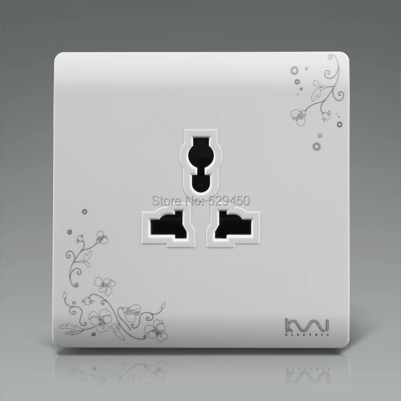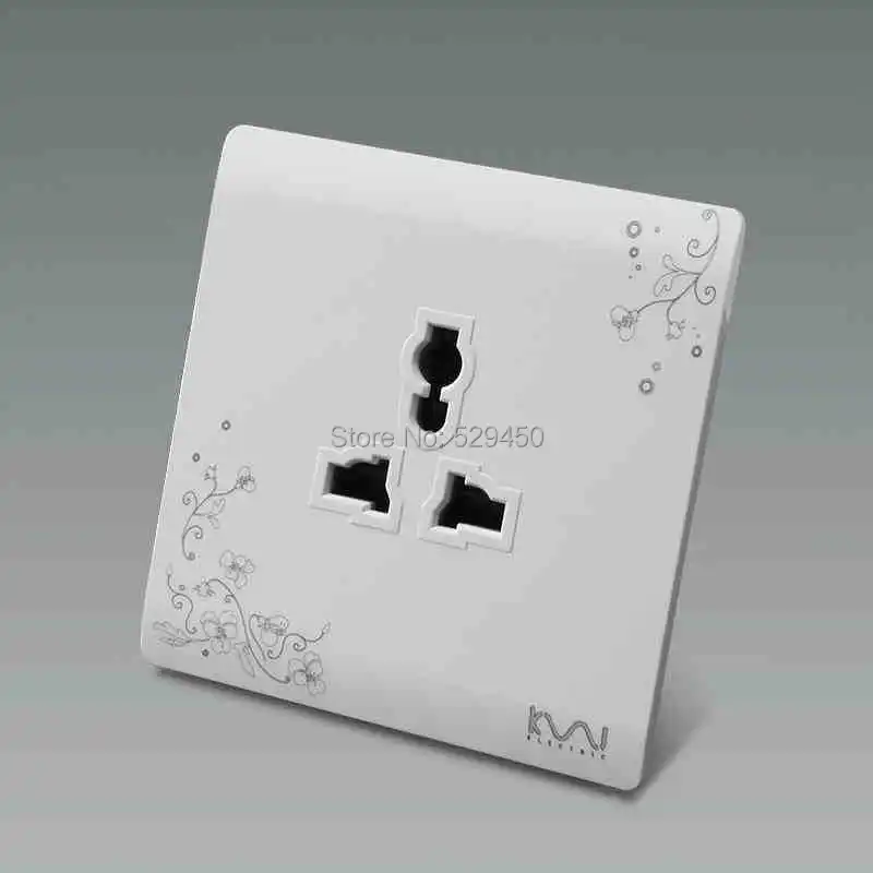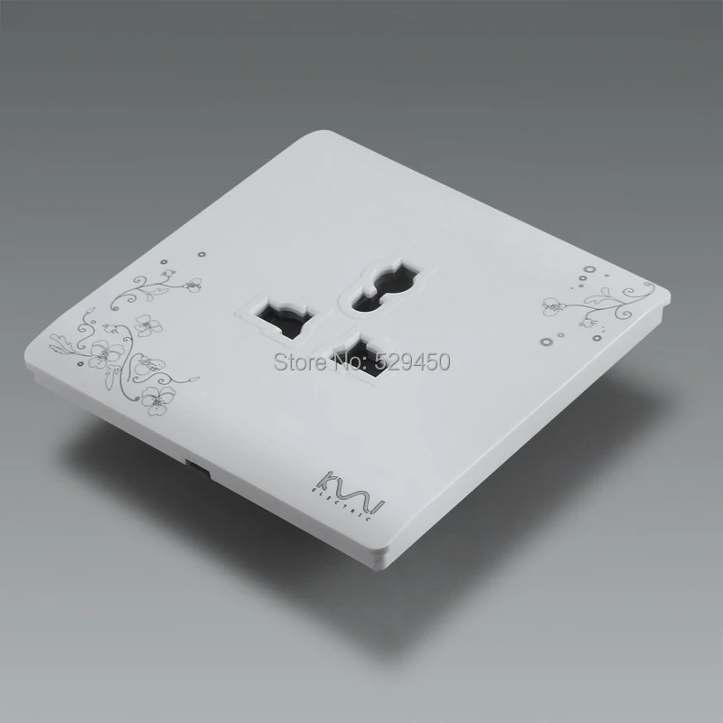 COSWALL Fashion Universal 3 Hole Wall Electrical Socket Power Outlet Brief White Art Flower Pattern Wall Panel AC 110~250V