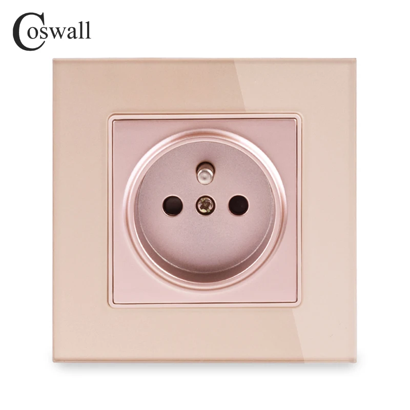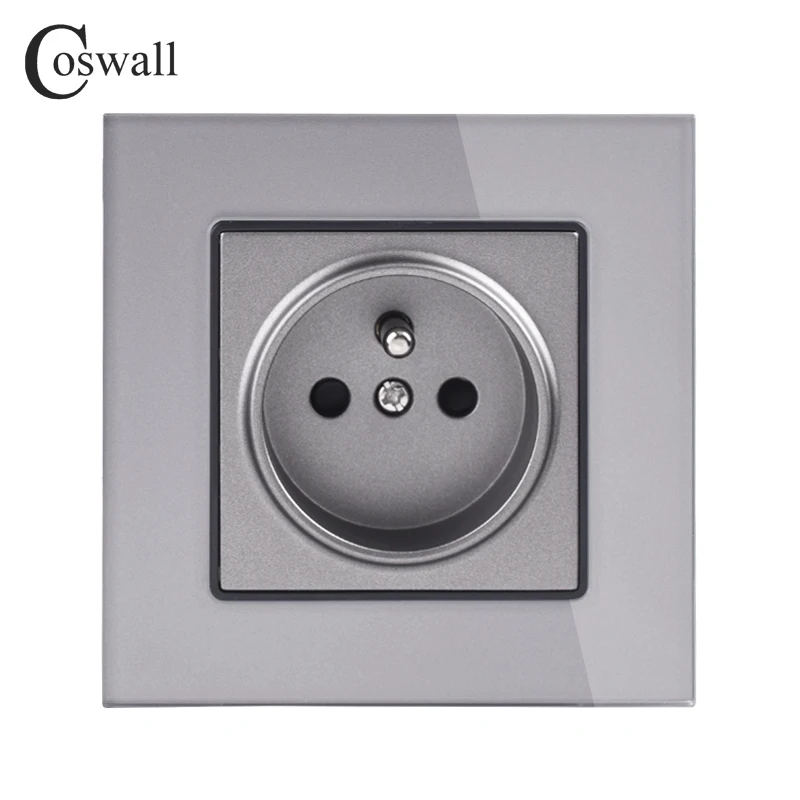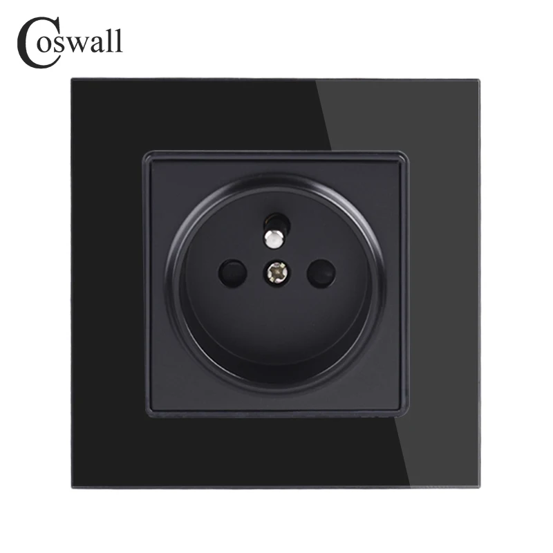 Coswall French Standard Socket Wall Crystal Glass Panel Power France Outlet Plug Grounded 16A 220V Children Protective Door
