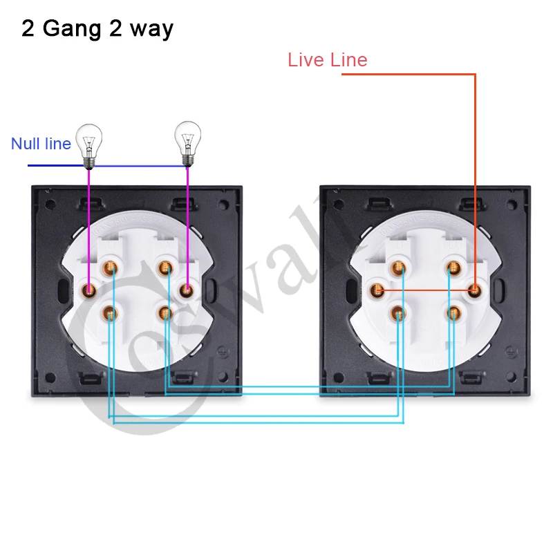 Coswall Glass Panel 2 Gang 2 Way Random Click On / Off Pass Through Wall Light Switch Switched With LED Indicator R11 Series