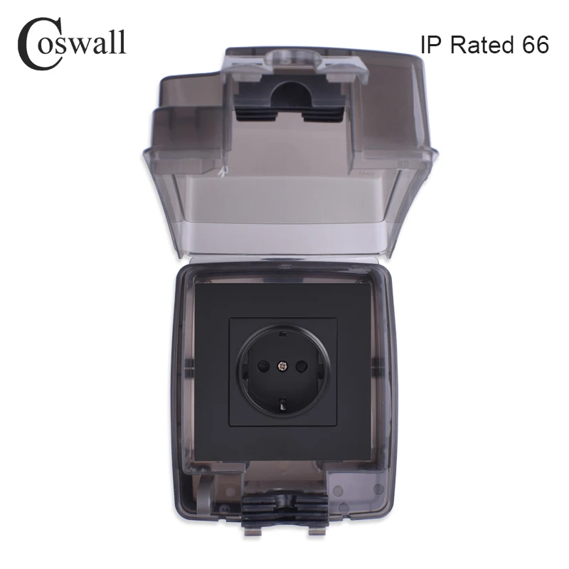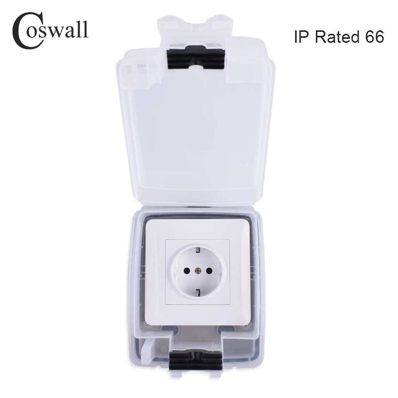 Coswall IP66 Weatherproof Waterproof Outdoor BOX Integrated Molding Box With Wall Socket 16A EU Outlet External Installation