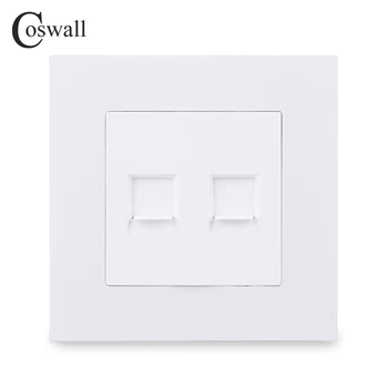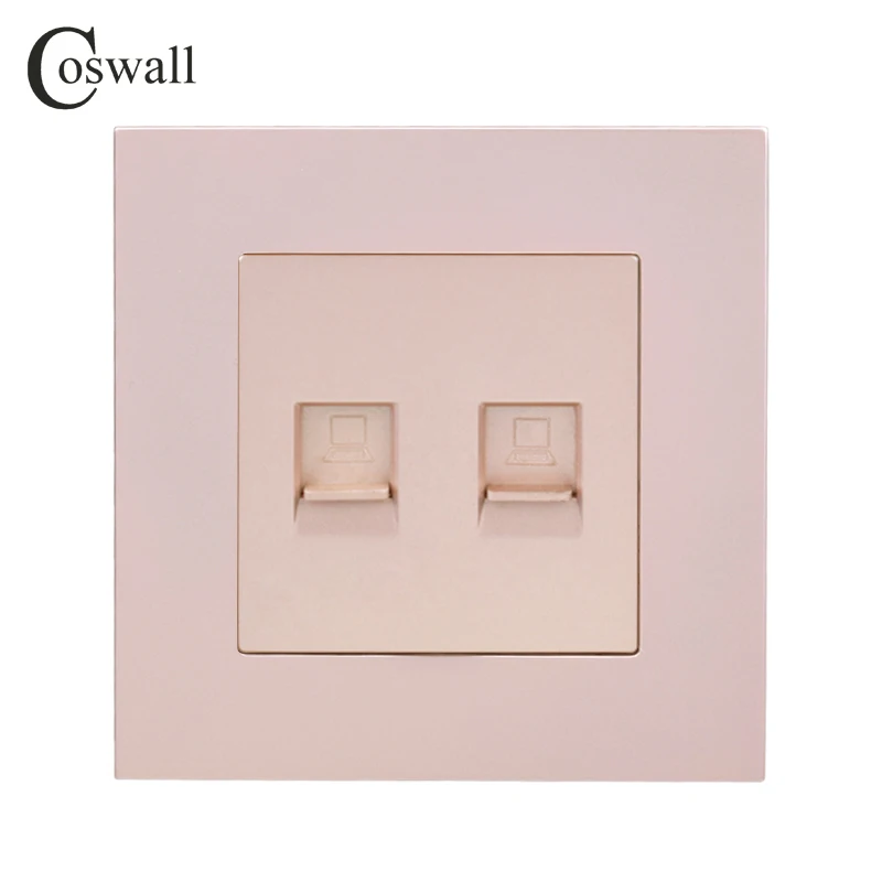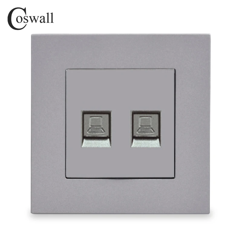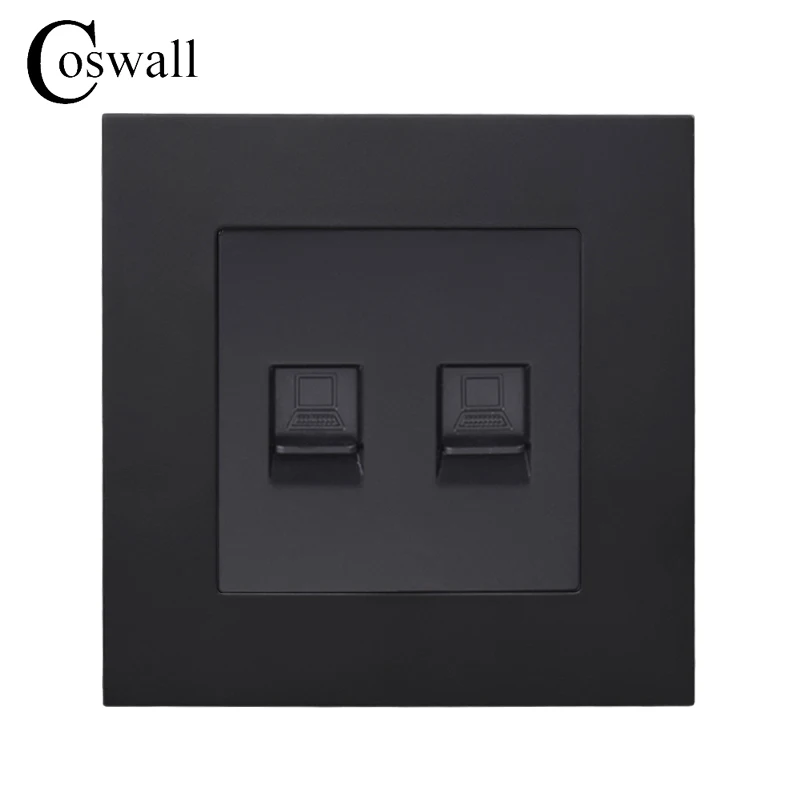 COSWALL Simple Style PC Panel Wall Socket 2 Gang CAT5E RJ45 Internet Outlet Computer Data Jack Black White Gold Grey E20 Series
