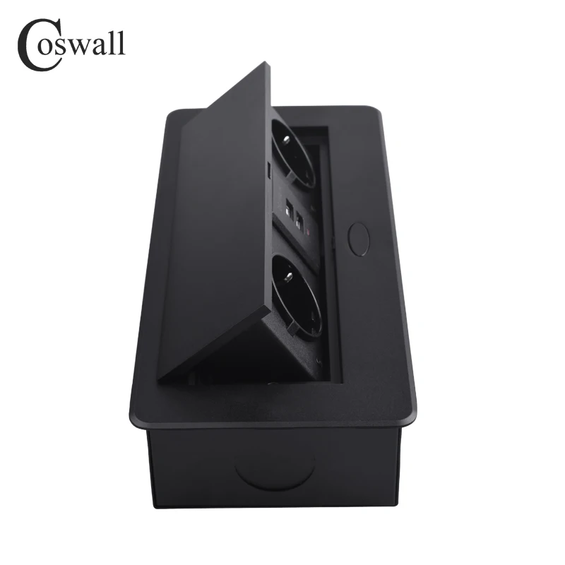 COSWALL Zinc Alloy Plate Slow POP UP 2 EU Socket Dual USB Charge Port 2.1A Office Table Outlet With 1.3M Extension Plug