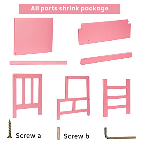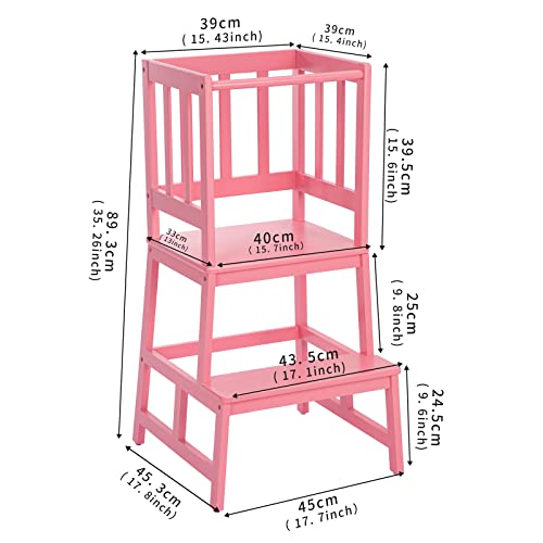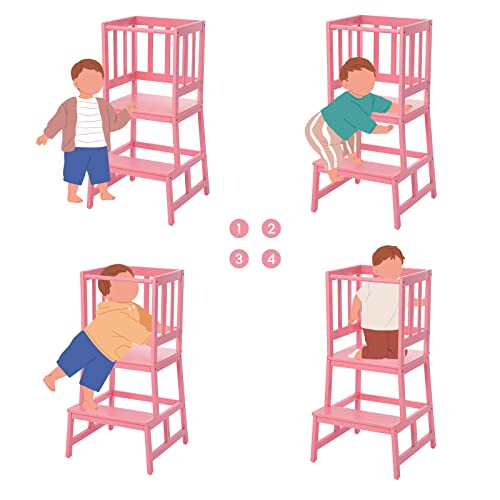 COSYLAND Kitchen Helper - Sgabello per bambini e bambini, con torre di apprendimento con tappetino antiscivolo, realizzato in bambù massiccio naturale (rosa)