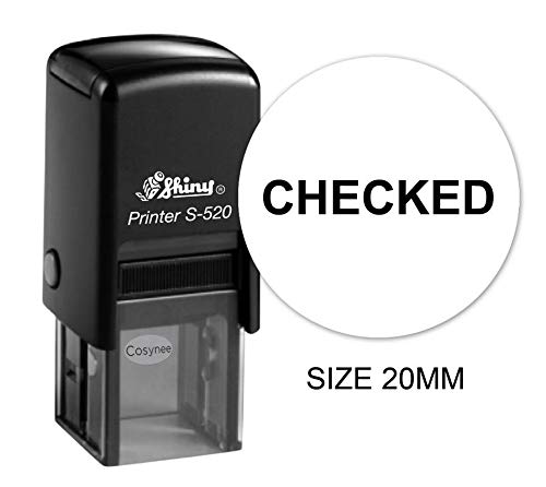 Cosynee Shiny S-520 - Mini timbro rotondo autoinchiostrante con testo a scacchi, monogramma rotondo in gomma 20 mm Nero