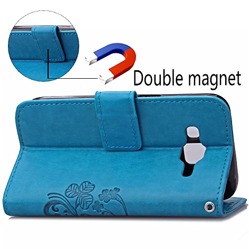 COTDINFOR J7 2015 Custodia Cover Elegante Retro Donna Clover Embossing PU in Pelle con Wallet Card Holder Flip Custodia per Samsung Galaxy J7 2015 Clover Blue SD