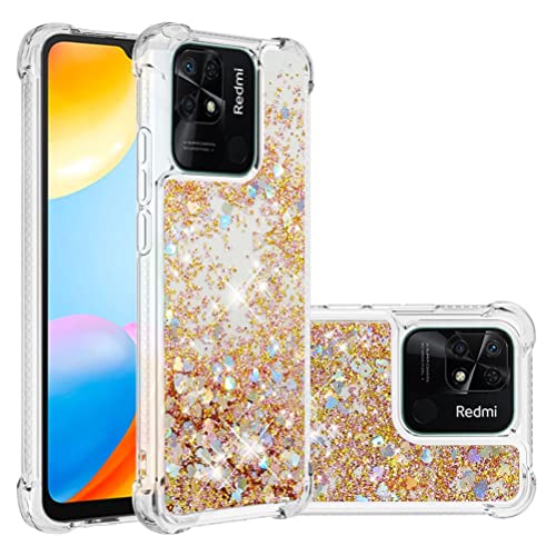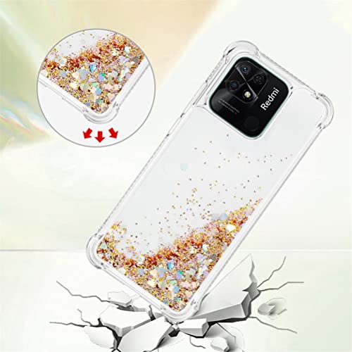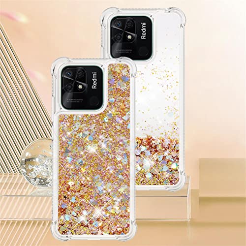 COTDINFOR Compatibile con Xiaomi Redmi 10C Custodia Liquido Cases Brillantini Glitter Floating Trasparente Silicone Protettivo Phone Cover per Redmi 10C TPU Love Gold YBWTLS.