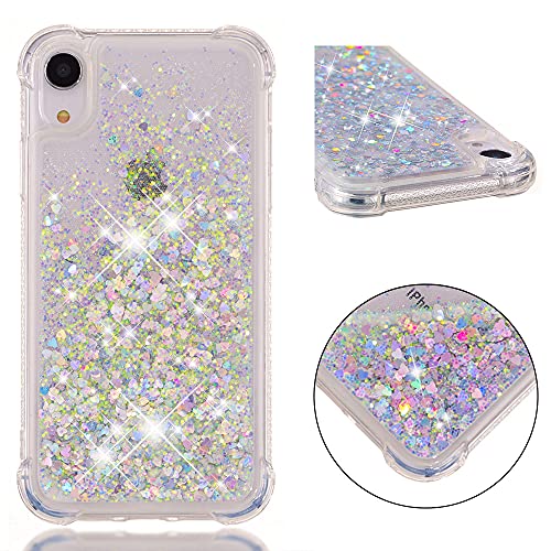 COTDINFOR Compatible avec iPhone XR Custodia Cases Brillantini Liquido Glitter Floating Trasparente Silicone Antiurto Protettivo Phone Cover per Phone XR TPU Love Silver YBWTLS.