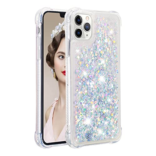 COTDINFOR Compatible avec iPhone 11 Custodia Liquido Cases Brillantini Liquido Glitter Sparkle Floating Trasparente Silicone Antiurto Protettivo Phone Cover per Phone 11 TPU Love Silver YBWTLS.
