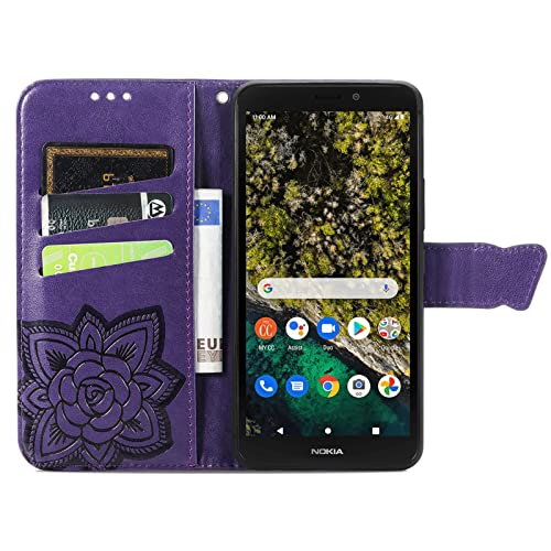 COTDINFOR Compatible with Nokia G11 Plus Custodia Cover a Libro Titolare Della Carta in Pelle PU Antiurto Chiusura Magnetica Cover per Nokia G11 Plus Flower Butterfly Dark purple SD