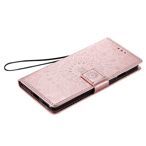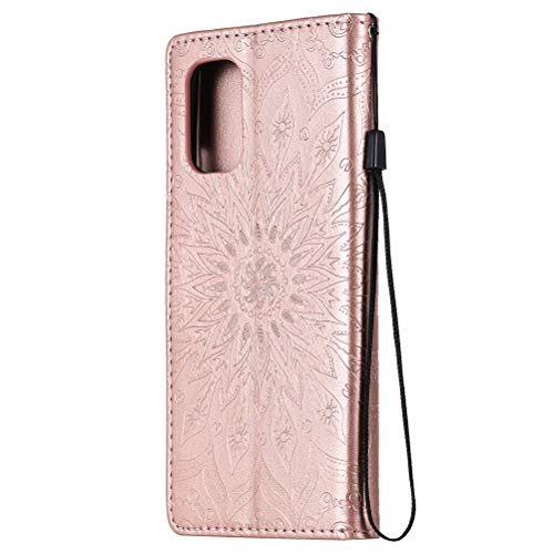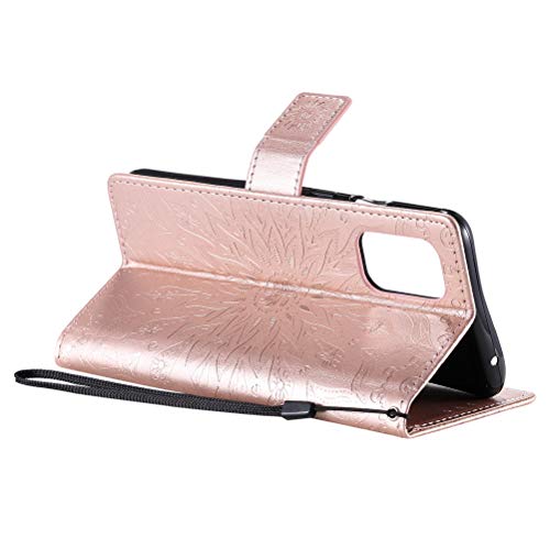 COTDINFOR Compatible with OnePlus 8T Custodia Creativo PU Portafoglio Slot per Schede Magnetico Ultrasottile Antiurto Flip Cover per OnePlus 8T Case Rose Gold Sunflower KT.