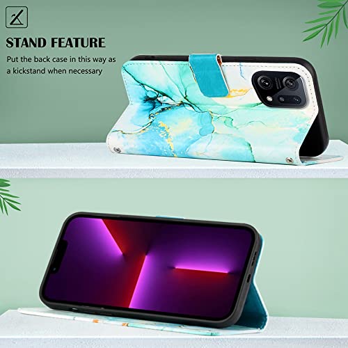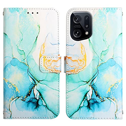 COTDINFOR Compatible with OPPO Find X5 Custodia Libro PU Pelle Portafoglio Slot Schede Chiusura Magnetico Antiurto Flip Cover per OPPO Find X5 Marble Green YB.