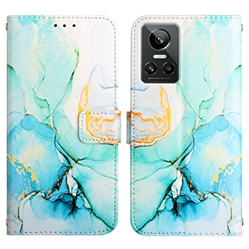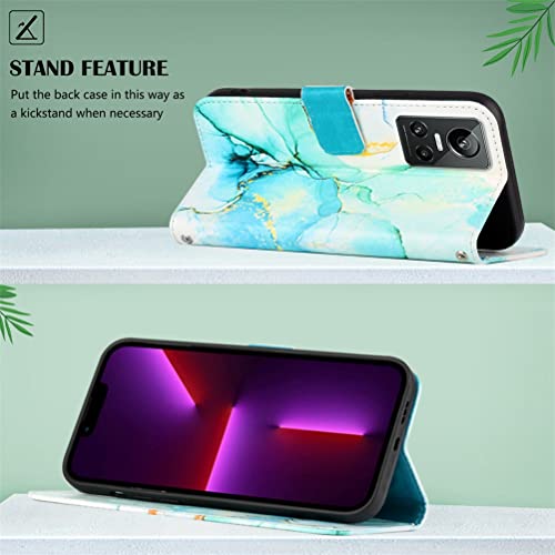 COTDINFOR Compatible with OPPO Find X3 Neo Custodia Libro PU Pelle Portafoglio Slot Schede Chiusura Magnetico Antiurto Flip Cover per OPPO Find X3 Neo Marble Green YB.