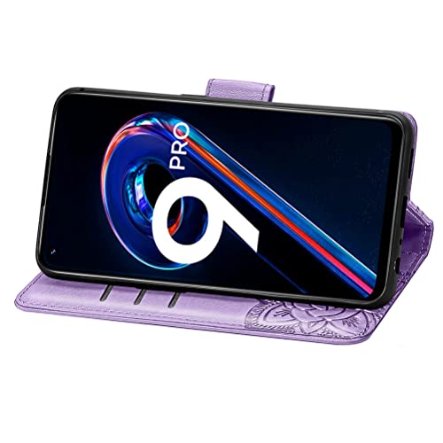 COTDINFOR Compatible with OPPO Realme 9 Pro Custodia Cover Crystal Bling PU Leather Card Slot Magnetic Lock Phone Cover per OPPO Realme 9 Pro Protettiva Case Diamond Butterfly Violet SD