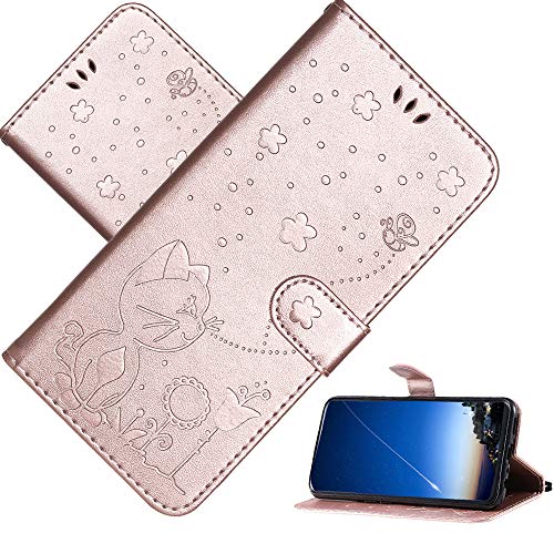COTDINFOR Compatible with Samsung Galaxy A31 Custodia Lucky Embossed Flower Shockproof PU Leather Card Holder Magnetic Lock Phone Cover per Galaxy A31 Case Rose Gold Bee Cat KT.