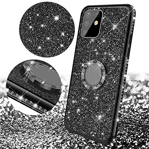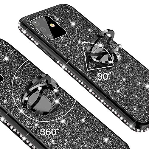 COTDINFOR Compatible with Samsung Galaxy A22 5G Custodia Glitter Diamond Slim Case Cellulare Ragazze Bling Protettivo Antiurto Plating Soft TPU Cover per Galaxy A22 5G Case - Black Glitter