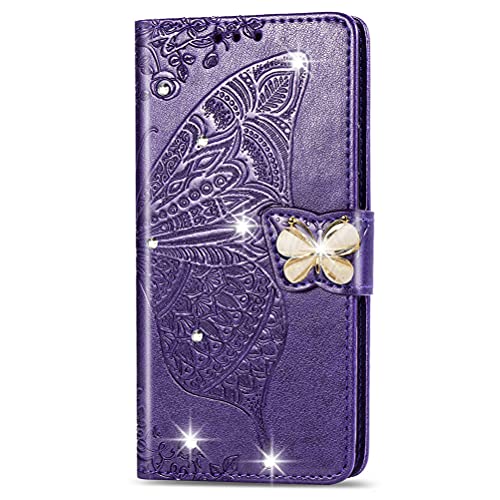 COTDINFOR Compatible with Samsung Galaxy A22 5G Custodia Cover Crystal Bling PU Leather Card Slot Magnetic Lock Phone Cover per Galaxy A22 5G Protettiva Case Diamond Butterfly purple SD