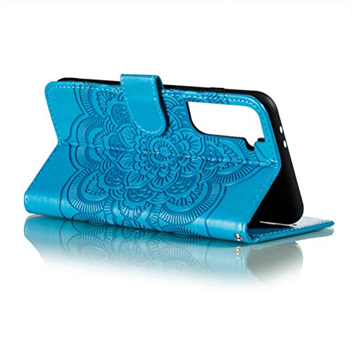 COTDINFOR Compatible with Samsung Galaxy S21 Plus Custodia Lucky Flower Creativo PU in Pelle Portafoglio Slot per schede Magnetico Antiurto Flip Cover per Galaxy S21 Plus Case Blue Mandala LD.