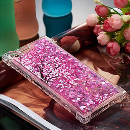 COTDINFOR Compatible with Sony Xperia XZ Premium Custodia Liquid Cases Bling Glitter Sparkle Floating Silicone Shockproof Phone Cover per Sony Xperia XZ Premium Case Cherry Blossoms YB.