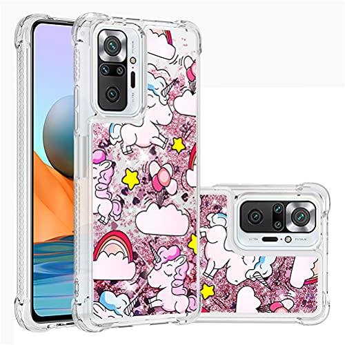 COTDINFOR Compatible with Xiaomi Redmi Note 10 pro Max Custodia Liquid Cases Bling Glitter Sparkle Floating Silicone Shockproof Phone Cover per Redmi Note 10 pro Case Rainbow Unicorn YB.
