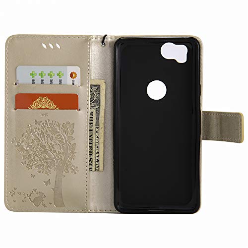 COTDINFOR Google Pixel 2 Case Premium PU Custodia in Pelle Cash Pocket Flip Custodia a Portafoglio Chiusa con Slot per Carta di Credito per Google Pixel 2 Gold Wishing Tree with Diamond KT.