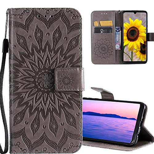 COTDINFOR Google Pixel 3A Custodia Premium PU Leather Mandala Fiore Elegante Wallet Custodia a Rilievo Custodia Folio Flip Case con Kickstand Card per Google Pixel 3A Gray Sunflower KT.