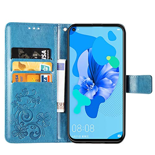 COTDINFOR per Huawei P20 Lite 2019 Custodia Slim Chiusura Magnetica Antiurto Retro PU Folio Filp Portafoglio a Fogli Mobili con Slot per Schede Custodia per Huawei P20 Lite 2019 Clover Blue SD