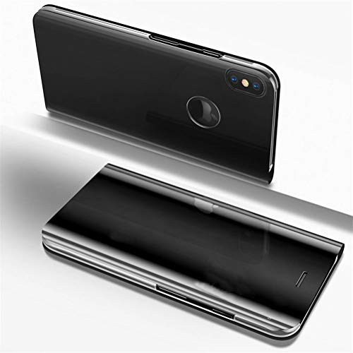 COTDINFOR iPhone XR Custodia Placcatura Specchio Clear View Standing Cover Slim Mirror Flip Portafoglio Antiurto Case con Funzione Stand per iPhone XR Mirror PU Black MX.