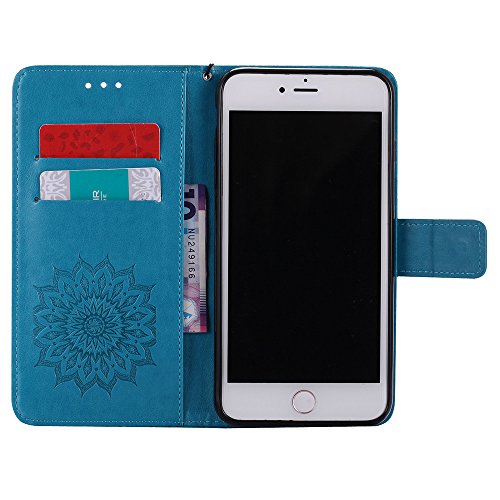 COTDINFOR iPhone 7 Plus Custodia Cover Lucky Flowers Girl Elegante Portafoglio di Carte di Credito Flip Custodia in Pelle Proteggi Cover per iPhone 8 Plus / 7 Plus (5.5 inch) Sunflower Blue KT