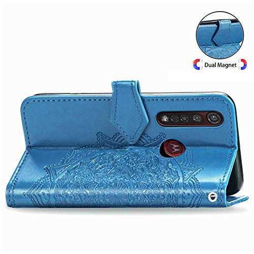 COTDINFOR per Motorola Moto G8 Plus Custodia Slim Chiusura Magnetica Retro PU Folio Filp Antiurto Portafoglio a con Slot Schede Custodia per Motorola Moto G8 Plus Half Mandala Blue SD
