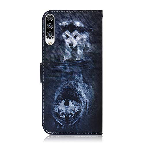 COTDINFOR pour Galaxy A30S Custodia Creativo Dipinto Premium PU in Pelle con Wallet Card Holder Magnetico Ultrasottile Antiurto Flip Custodia per Samsung Galaxy A30S Wolf Dog TX-CH.