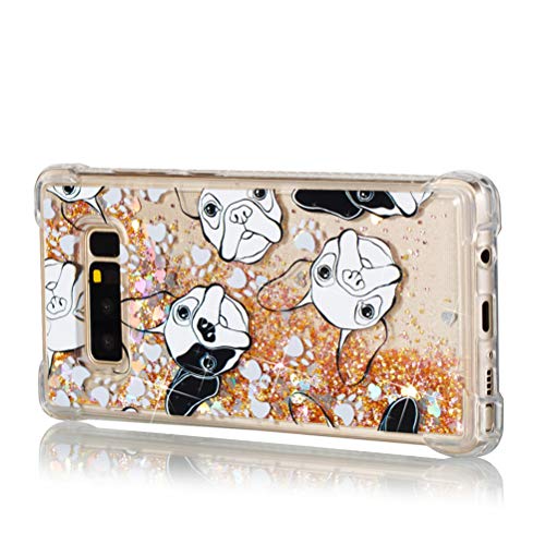 COTDINFOR pour Galaxy Note 8 Custodia Silicone Trasparente Design Antiurto Ultrasottile Bling Glitter Flowing Liquido Quicksand Cute TPU Bumper Custodia per Samsung Note 8 Funny Dog YB.