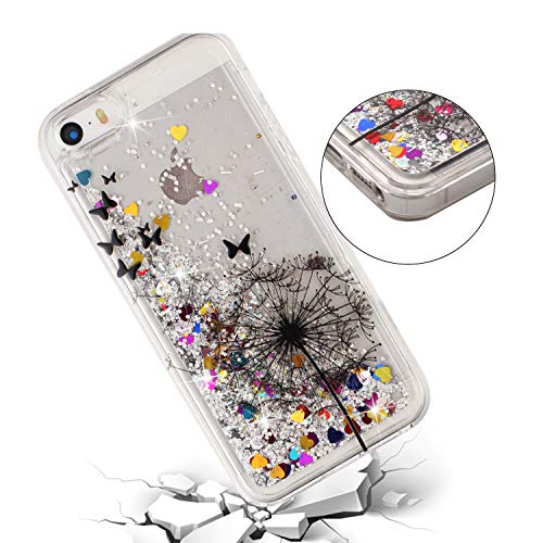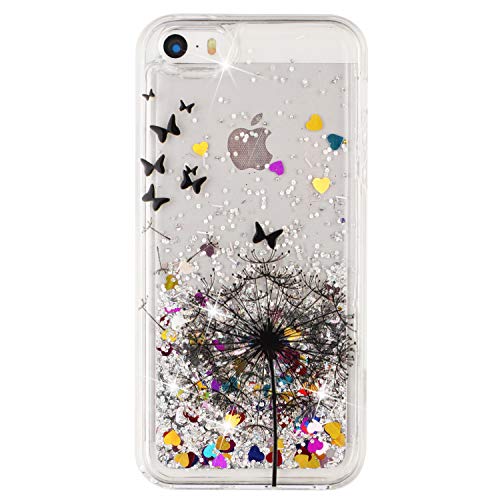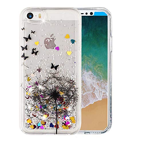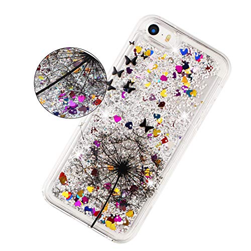 COTDINFOR pour iPhone 5S Custodia Silicone Design Ultrasottile Bling Glitter Flowing Liquido Quicksand Cute TPU Bumper Custodia per iPhone 5 / 5S / SE Dandelion XYLS.