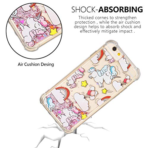 COTDINFOR pour iPhone 6 Custodia Silicone Trasparente Design Antiurto Ultrasottile Bling Glitter Flowing Liquido Quicksand Cute TPU Bumper Custodia per iPhone 6 / 6S Rainbow Unicorn YB.