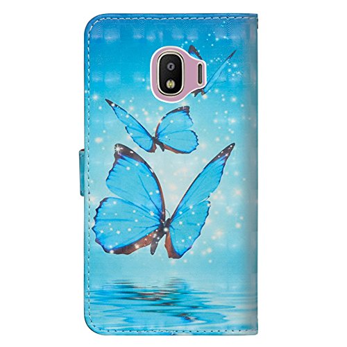 COTDINFOR pour Samsung Galaxy J2 PRO 2018 Custodia Cover TPU 3D Effect Painted PU in Pelle con Wallet Card Holder Flip Custodia per Samsung Galaxy J2 PRO 2018 Three Blue Butterflies YX.