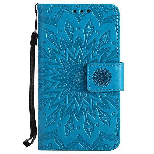 COTDINFOR Samsung Galaxy J1 2016 Custodia Cover Lucky Flowers Girl Elegante Portafoglio di Carte di Credito Magnetic Flip Custodia in Pelle Proteggi Cover per Samsung Galaxy J1 2016 Sunflower Blue KT