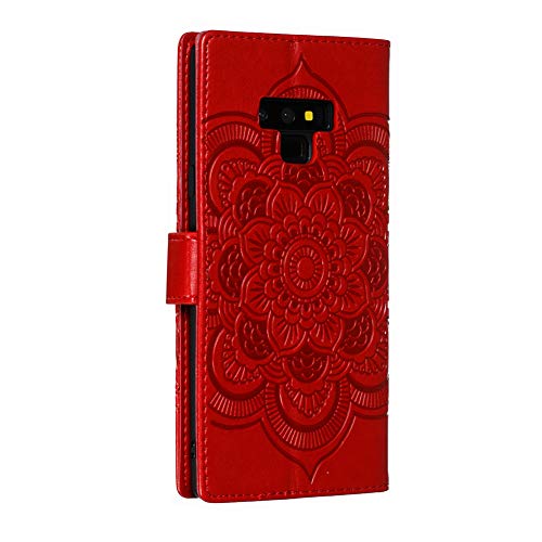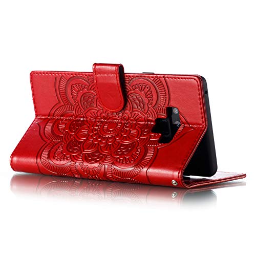 COTDINFOR per Samsung Galaxy Note 9 Custodia Premium PU Leather Flip Ultrasottile Antiurto Elegante Retro Magnetico Portafoglio Cover Case per Samsung Galaxy Note 9 Red Mandala LD.