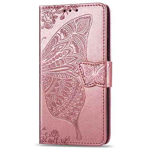 COTDINFOR Wallet Case for Samsung Galaxy J4 Plus Slim Magnetic Closure Retro Leather PU Folio Bookstyle Flip Card Holder Cover for Samsung Galaxy J4 Plus 2018 Flower Butterfly Rose Gold SD