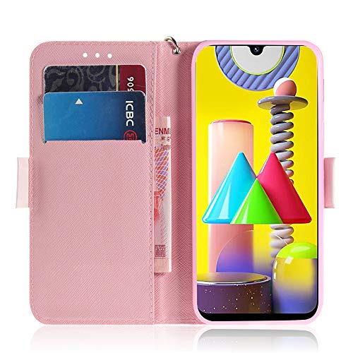 COTDINFORCA Case for Samsung Galaxy M31 Custodia, Cool Animal 3D Effect Painted PU Leather Flip Chiusura Magnetica Titolare della Carta Stand Wallet Cover for Galaxy M31 White Flowers TX.