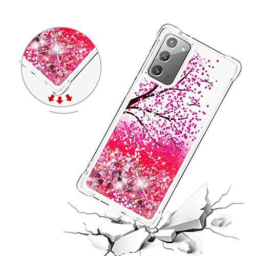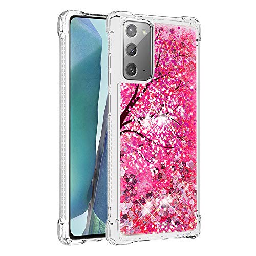 COTDINFORCA Case for Samsung Galaxy Note 20 Custodia Bling,Samsung Note 20 Liquid Cases Glitter Sparkle Floating Silicone Shockproof Phone Cover per Galaxy Note 20 Cherry Blossoms YB.