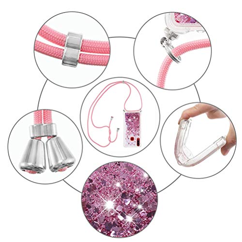 COTDINFORCA Compatible with Samsung Galaxy A20S Custodia Bling Liquid Cases Glitter Sparkle Floating Silicone Shockproof Phone Cover per Galaxy A20S Case Lanyard TPU Rose Love YB.